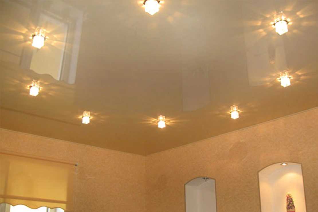 Устройство освещения в натяжных потолках осложнено особенностями материала.
