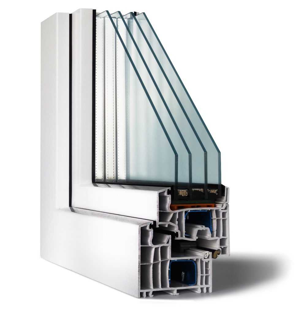 Конструкция предусматривает наличие трех герметичных камер и четырех стекло листов. Таким окнам свойственна повышенная теплоизоляция и прочность. Используются на территориях с суровым климатом, где преобладают низкие температуры, в местах с экстремальными ветровыми и шумовыми нагрузками. В умеренном климате, трехкамерные рамы используются для остекления верхних этажей высоток и в зданиях вблизи объектов с повышенным уровнем шума: автомагистрали, аэропорты и прочие.