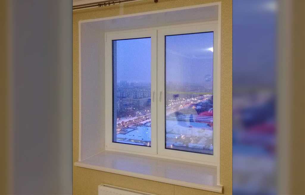 Наиболее распространённая конструкция. Одна из створок, как правило глухая, вторая открывается. Такая рама монтируется в жилых комнатах: спальнях небольших гостиных, кухонных комнатах, массово устанавливаются в многоэтажном строительстве, оптимальный и достаточно экономичный вариант для дачных домов. Удобны в эксплуатации и уходе за стеклопакетами.
