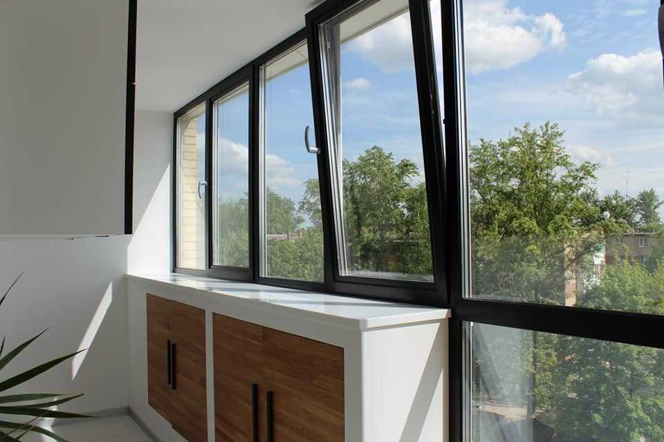 Наклонно-сдвижной. При остеклении окон раздвижная система такого типа более сложная, зато и более универсальная. На раме устанавливают несколько соединенных роликами направляющих и обвязка фурнитуры. Открываются такие окна путем поворота ручки: створка при этом двигается внутрь балкона. Несомненный плюс такого механизма — окно можно открывать на проветривание. Основным материалом может служить алюминиевый профиль, пластик и даже древесина.