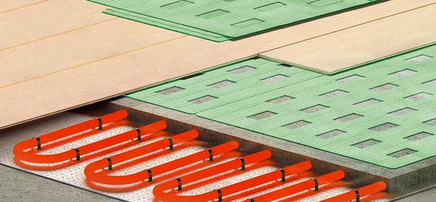 Пол обогревается благодаря циркуляции горячей воды по смонтированным каналам под ламинатом. Это возможно при помощи насоса, который подключается к системе.