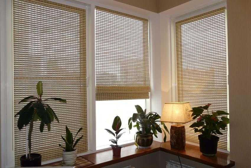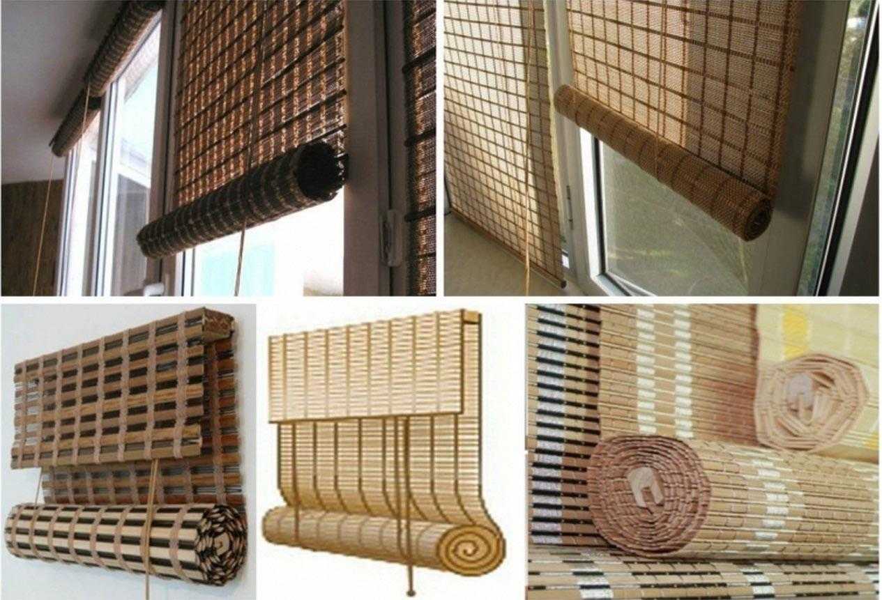 Бамбуковое полотно устанавливают на конструкции римских или рулонных штор. Полотна бывают темных и светлых оттенков коричневого цвета. Бамбуковые шторы часто дополняют другими видами текстильного оформления окон. Гармоничное сочетание получается с шелком, льном, тюлем. Не очень удачный союз с бархатом, атласом, органзой.
