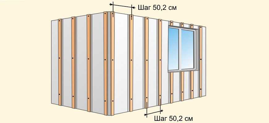 По нанесенной разметке крепятся направляющие, шаг между которыми должен лежать в пределах от 0,3 до 0,5 м (в зависимости от типоразмера панелей). Для более плотного прилегания направляющих к основной стене необходимо подкладывать под профили куски пенопласта или небольшие брусочки. В местах, где потребуется дополнительная нагрузка (например, при оформлении дверных и оконных проемов), необходимо усилить обрешетку дополнительными направляющими.