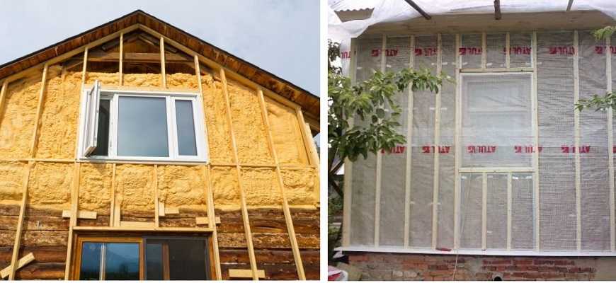 Для защиты дома от охлаждения используют слой теплоизоляции, отличающейся повышенной паропроницаемостью по сравнению с характеристиками материала стен. Требование позволяет свести до минимума образование конденсата на линии соприкосновения слоев разнородных веществ, вызывающего гниение либо ухудшение защитных свойств утеплителя. Для жилых домов чаще всего применяют плиты из уплотненной минеральной ваты, в которых прорезают окна для выхода пластин подвесов.