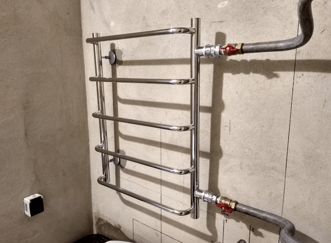 Новый полотенцесушитель, являющийся частью стояка (правильно)