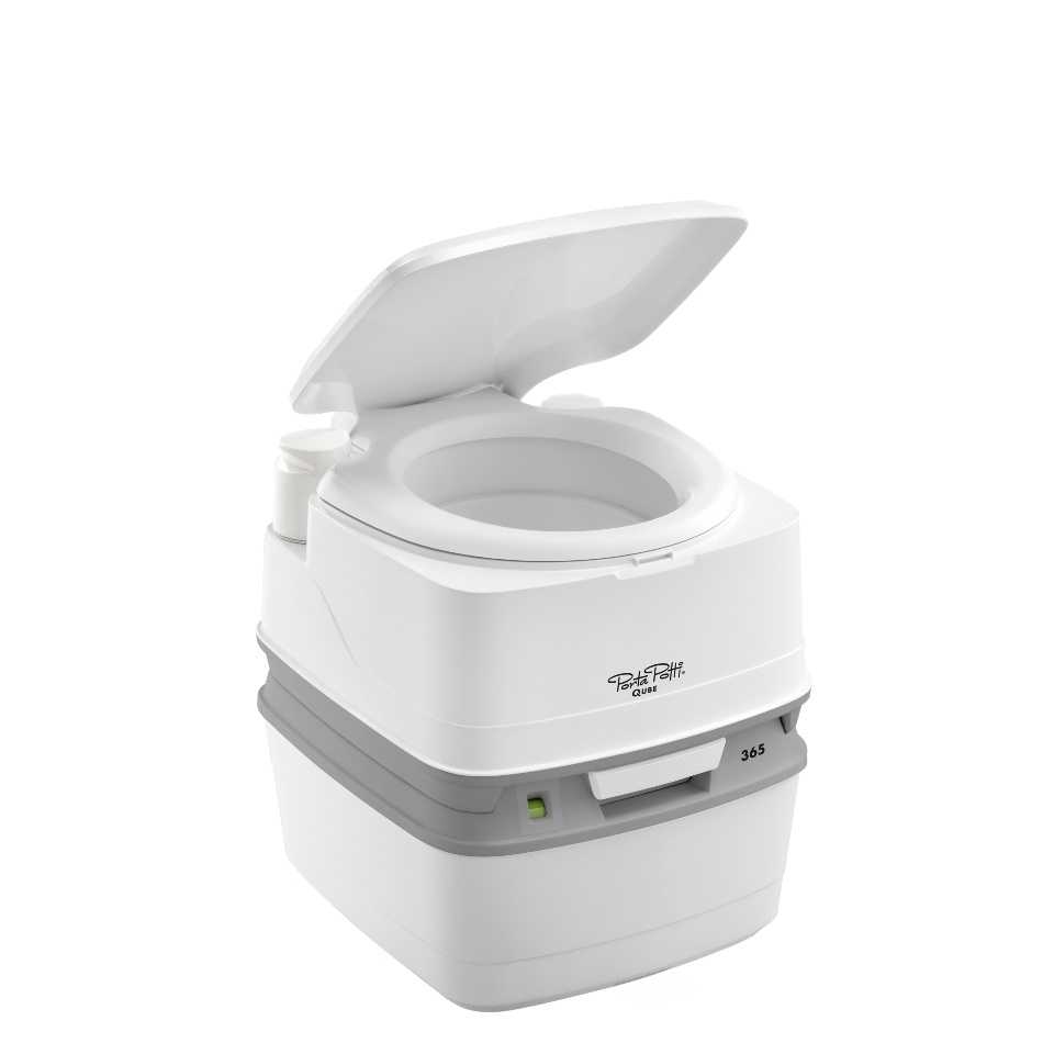 Thetford Porta Potti 565E. Ультракомпактный переносной туалет со стильным дизайном, комплект поставки весит всего 5,5 кг. Модель оснащена электронасосом, работающим от батарейного источника энергии, индикатором заполнения емкостей, удобна в применении. Емкость нижнего бака составляет 21 л. Стоит такая конструкция около 15 000 рублей.