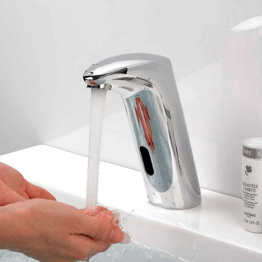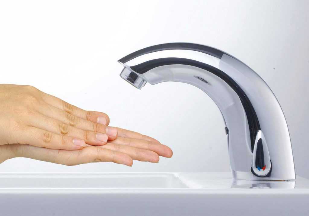 В смесители, установленные на умывальниках, встраивают сенсорные чувствительные элементы. При поднесении рук в зону контроля инфракрасного датчика, устройство получает сигнал, затем автоматически из крана происходит подача воды. При этом не нужно при каждом включении настраивать температуру.