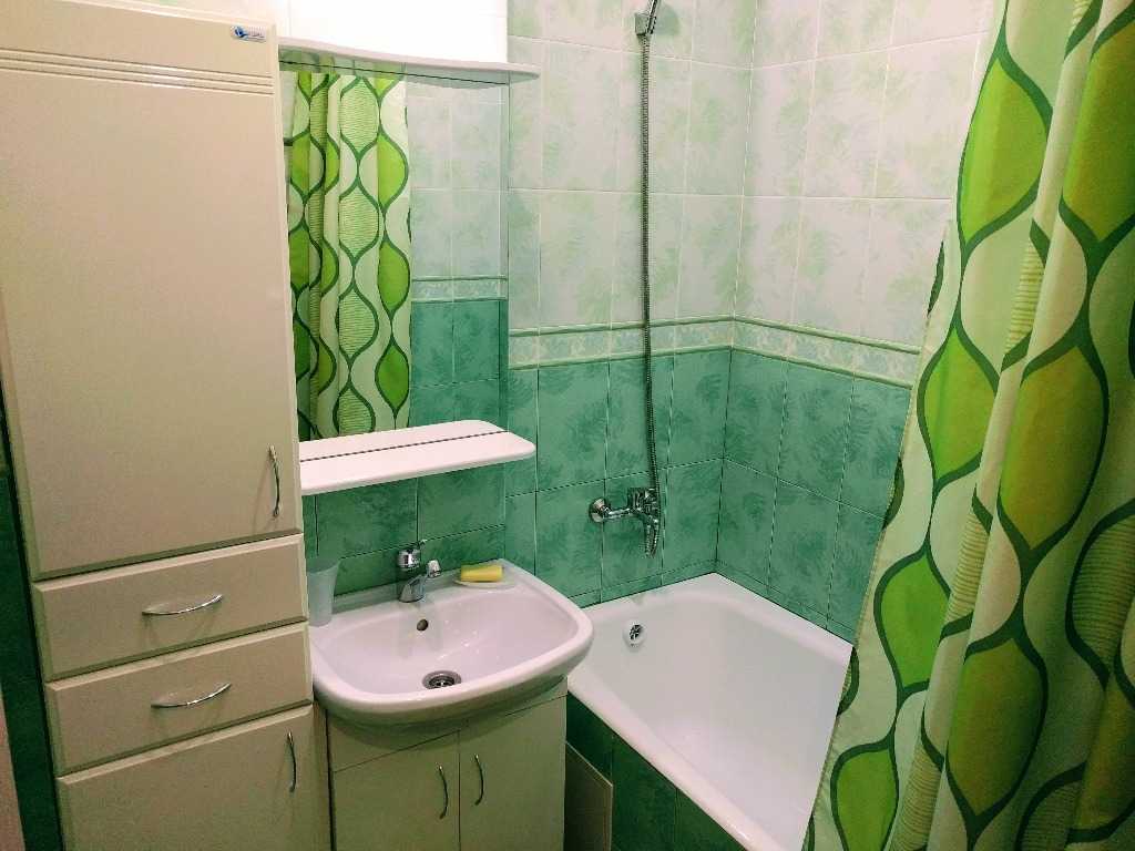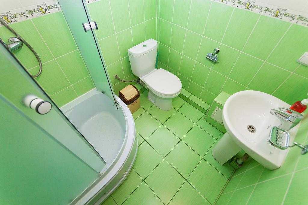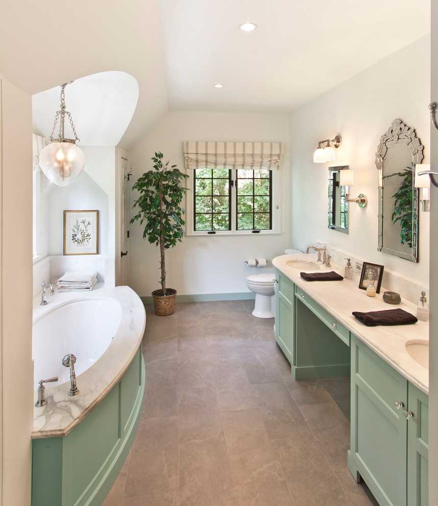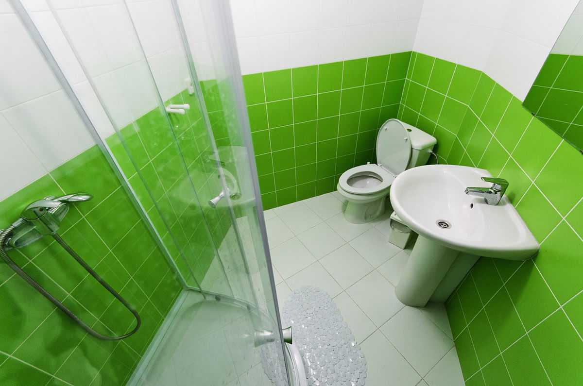 Если вся комната выполнена в зеленом цвете, красиво будет смотреться сантехника и мебель белых цветов. Они будут удачно контрастировать друг с другом.