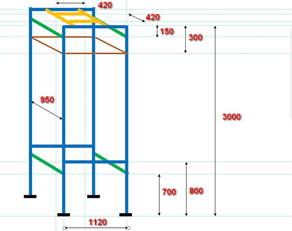 Собирается каркас изделия. Уже в собранном виде он крепится к основанию через монтажные отверстия на пластинах, приваренных к стойкам.