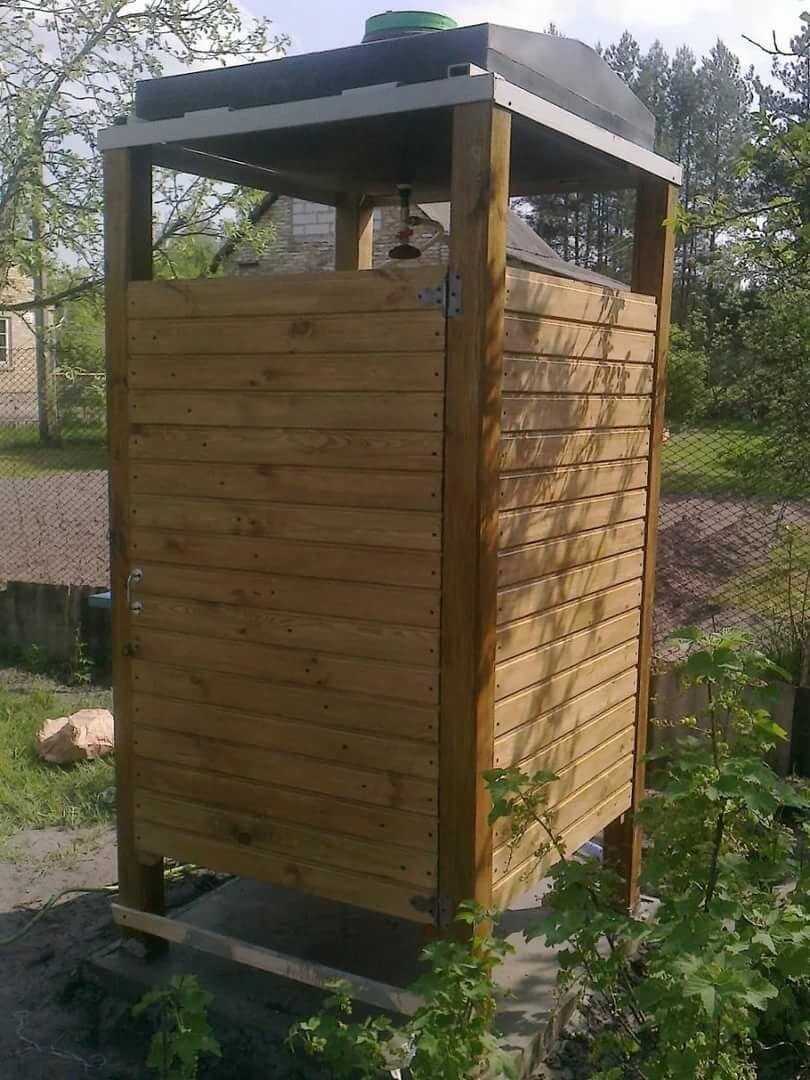 А навес при выходе из душа уберегает от палящего солнца или, напротив, от дождя и ветра. Более дорогие модели душа дачного с подогревом воды имеют все эти приятные преимущества.