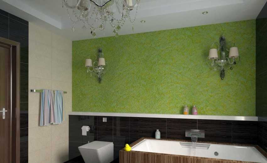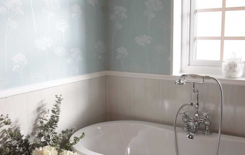 Однако, все же, не стоит оклеивать обоями места над ванной или раковиной, так как тут обои слишком часто будут контактировать с большим количеством воды, и даже самый качественный материал может в скором времени прийти в негодность на месте стыков. Места стены, где происходить наибольший контакт с водой лучше отделать плиткой или пластиковыми панелями, они не столь восприимчивы к влаге, и в сочетании с обоями в ванной, могут создать шикарный и незабываемый дизайн.