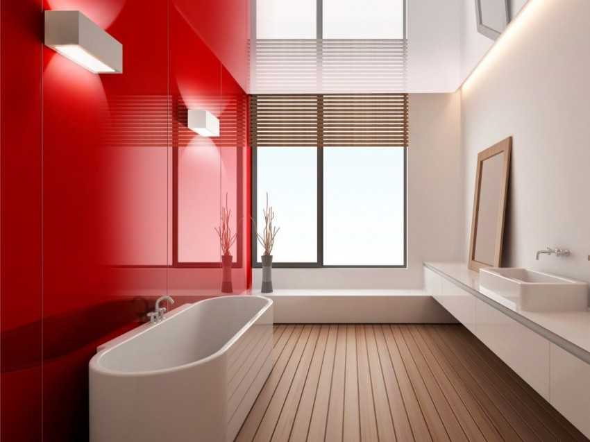 Стеклянные панели устойчивы к жесткому микроклимату в ванных комнатах. Для отделки стен применяется кварцевое стекло. Оно характеризуется прочностью, может быть прозрачным или иметь цветное покрытие.