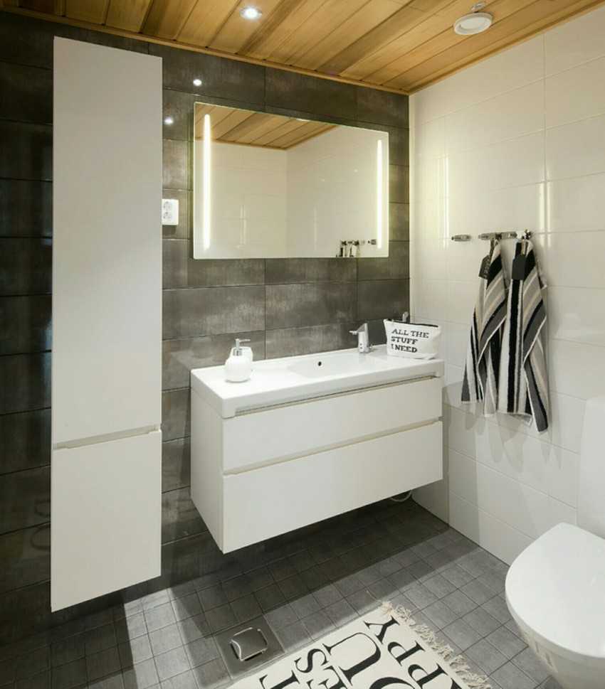 Верхний уровень обеспечивается потолочными светильниками. Для маленьких ванных комнат часто достаточно одного-единственного источника света на потолке – люстры или встроенного светильника. Для помещений побольше – их может быть несколько. Чаще всего используются галогенные лампы. Они могут быть открытыми или встраиваемыми в потолок. Очень хорошо, если они будут также снабжены поворотным механизмом, чтобы, при необходимости, менять направление света.