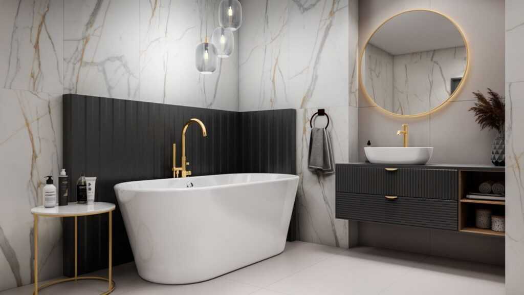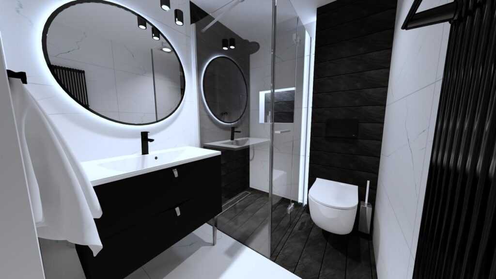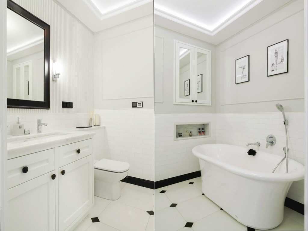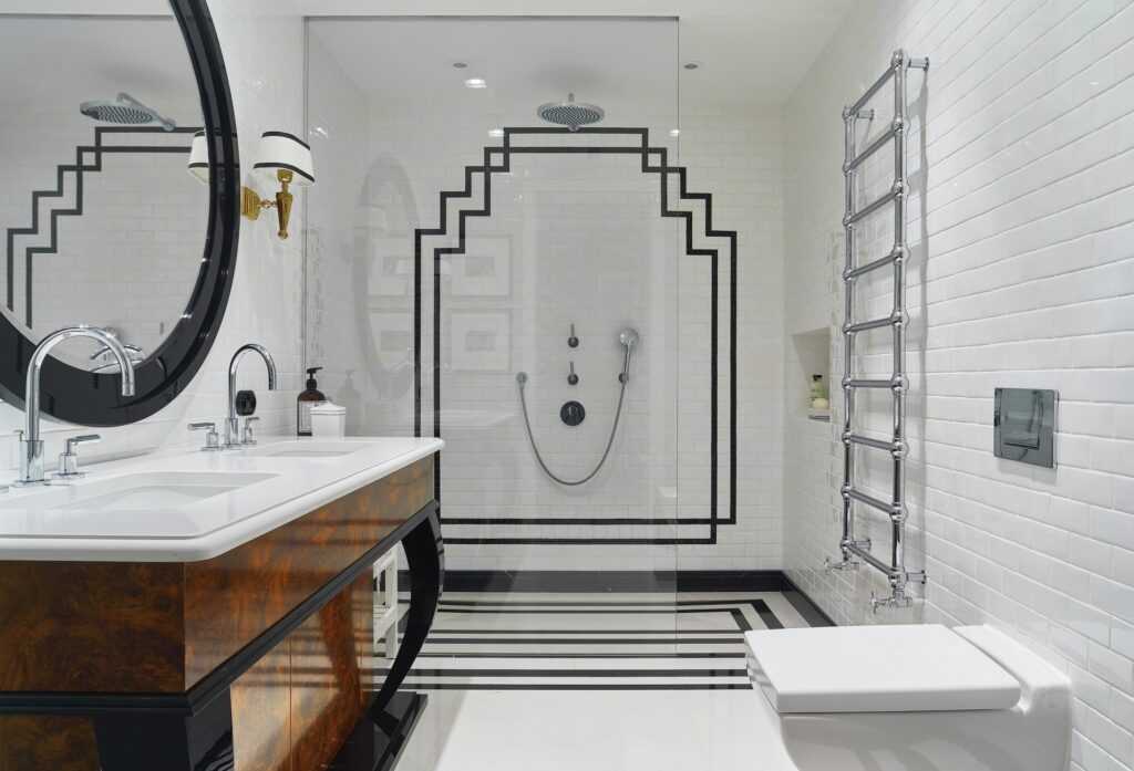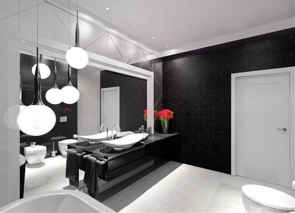Черно-белые стили оформления для ванной комнаты