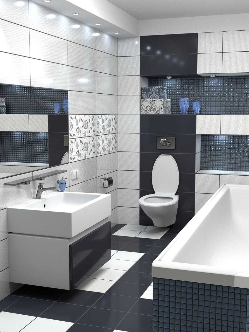 Нюансы отделки ванной в черно-белом цвете