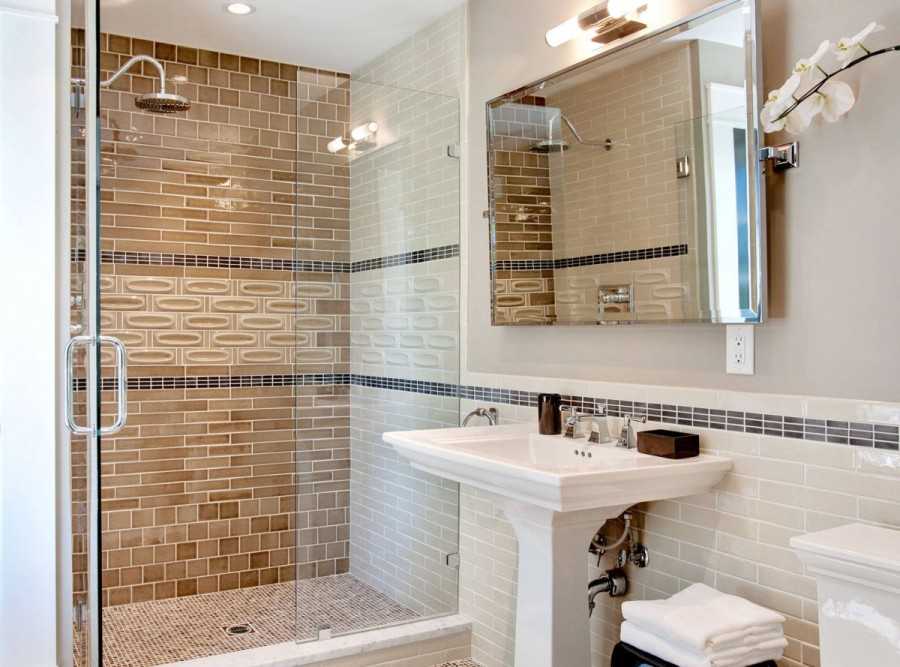 Если помещение просторное, выбор цветовой гаммы расширяется. В таком случае учитываются личный вкус, выбранный стиль интерьера и эффект, который вы хотите получить. Темные тона (коричневый, графитовый, черный, синий) смотрятся довольно строго. Обычно так оформляют современные минималистичные душевые комнаты.