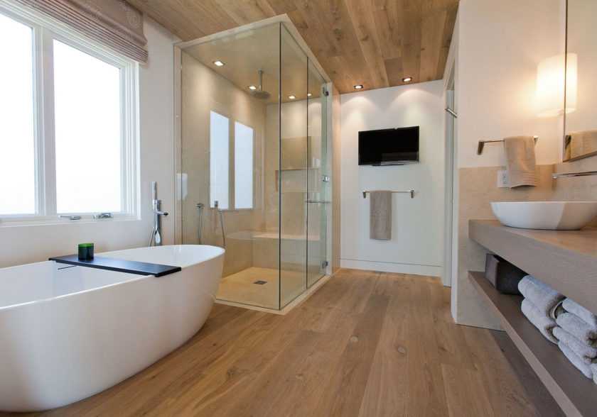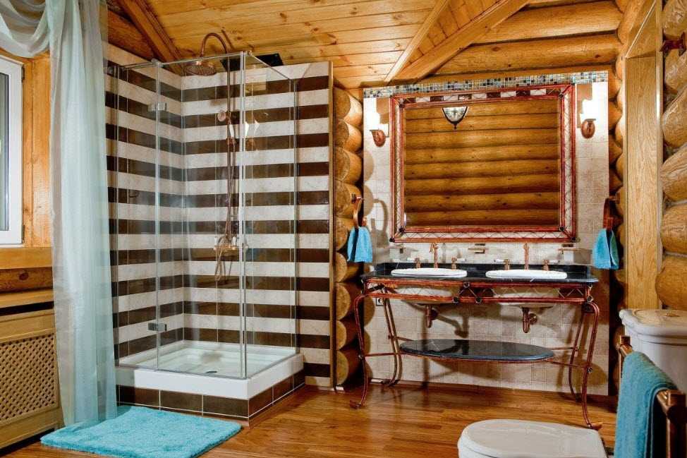 Что касается других материалов, то для отделки ванной комнаты с душевой в загородном доме можно использовать: