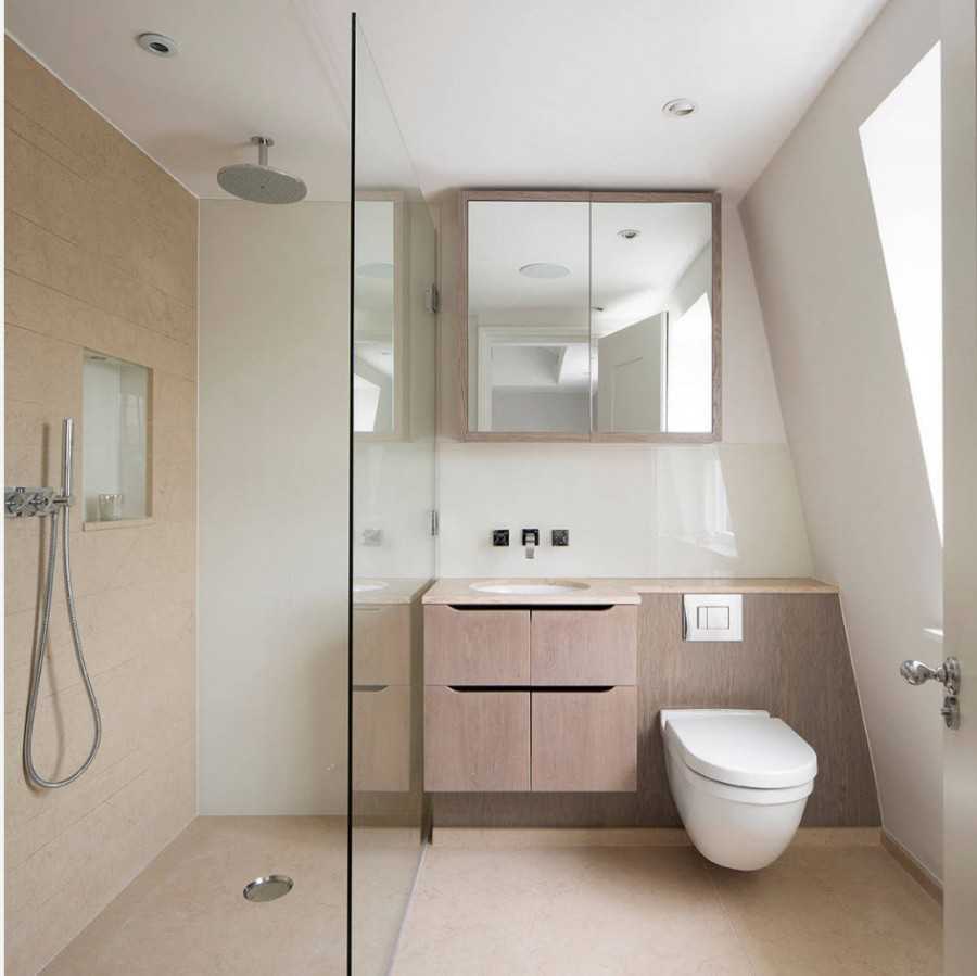 - просторна для передвижений, до умывальника или ванной оставьте около 1 м свободного пространства;
