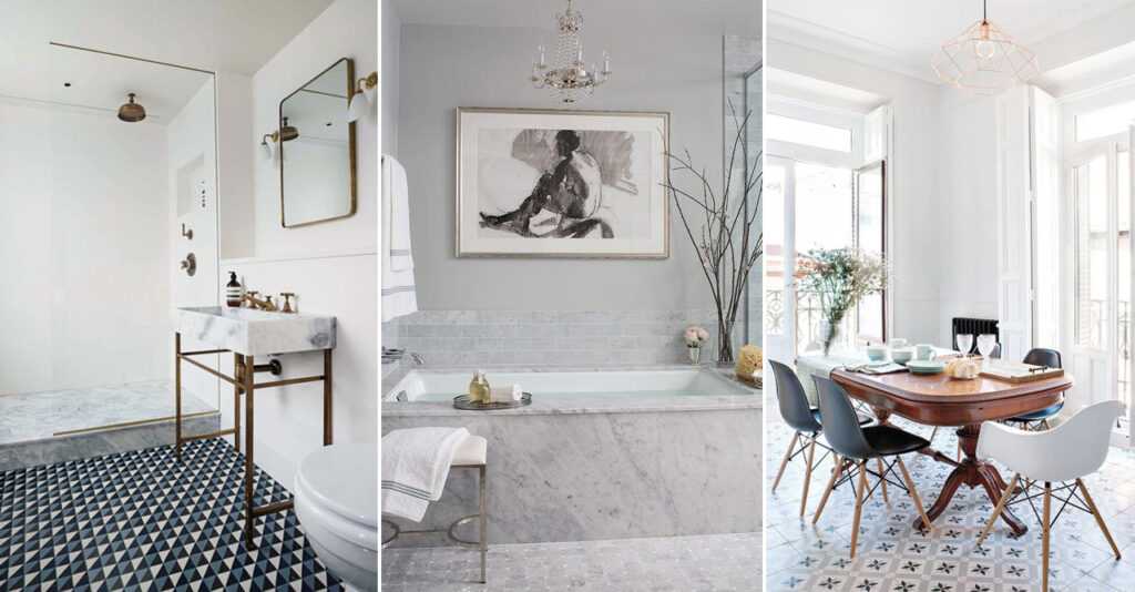 Обрати внимание на плитку с легким витиеватым или растительным орнаментом, отличающимся на несколько тонов. Выбирай фактуры под дерево или камень