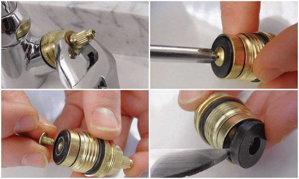 Процесс замены прокладки в двухвентильном смесителе: