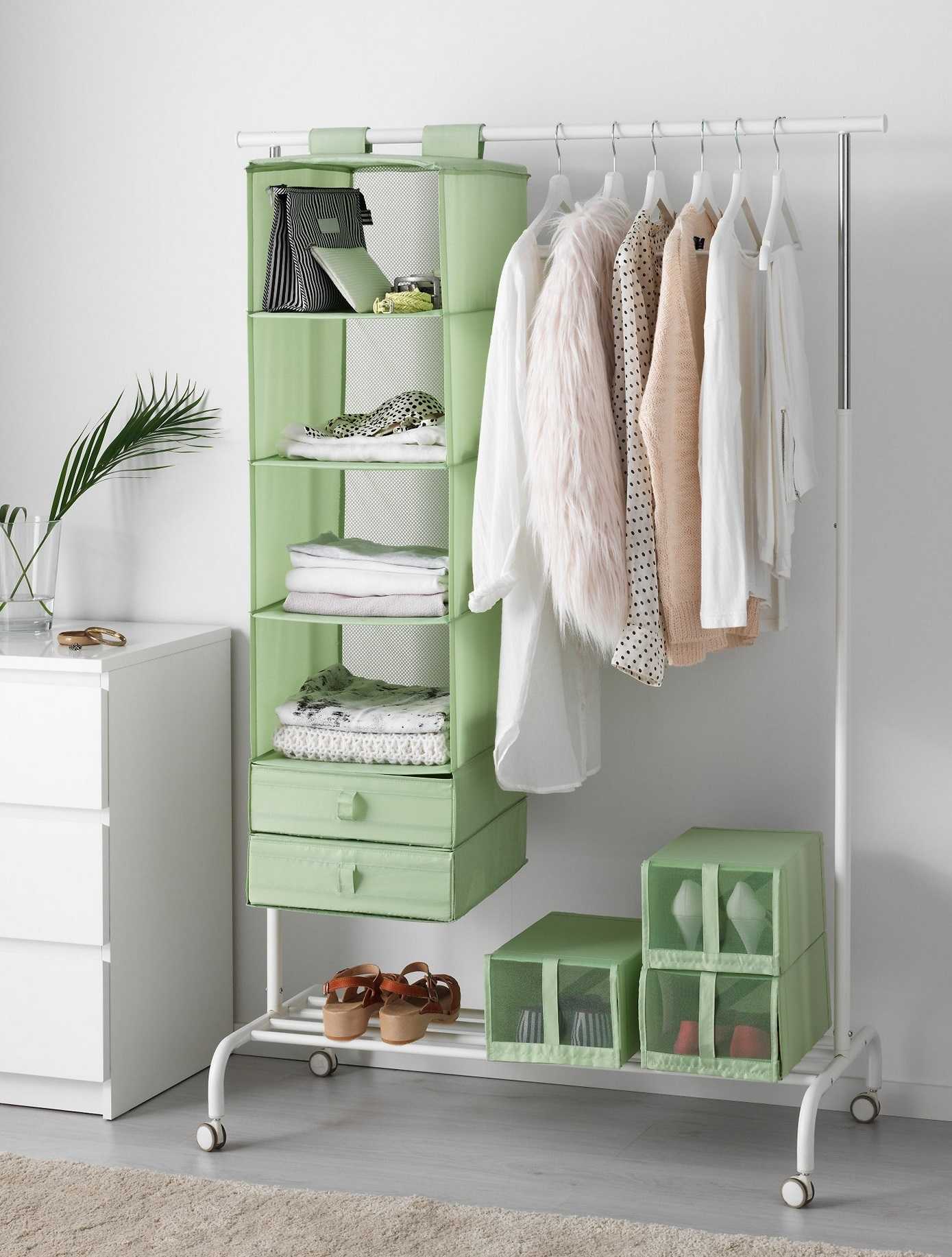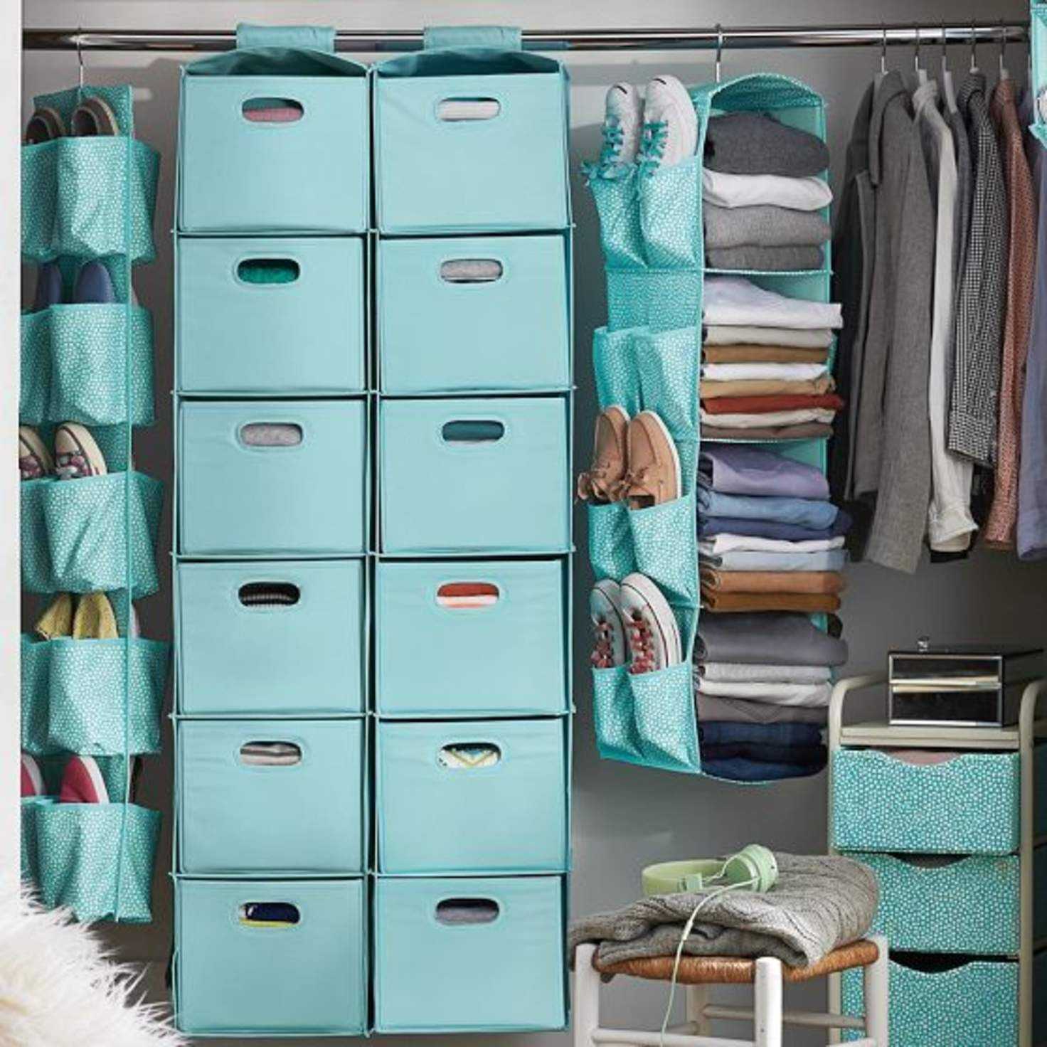Одни из лучших помощников в организации правильного хранения вещей на полках — это различные корзины. Они могут служить местом для хранения украшений и аксессуаров, нижнего белья и прочих мелочей. Определите каждой корзине свое назначение и забудьте о беспорядке.