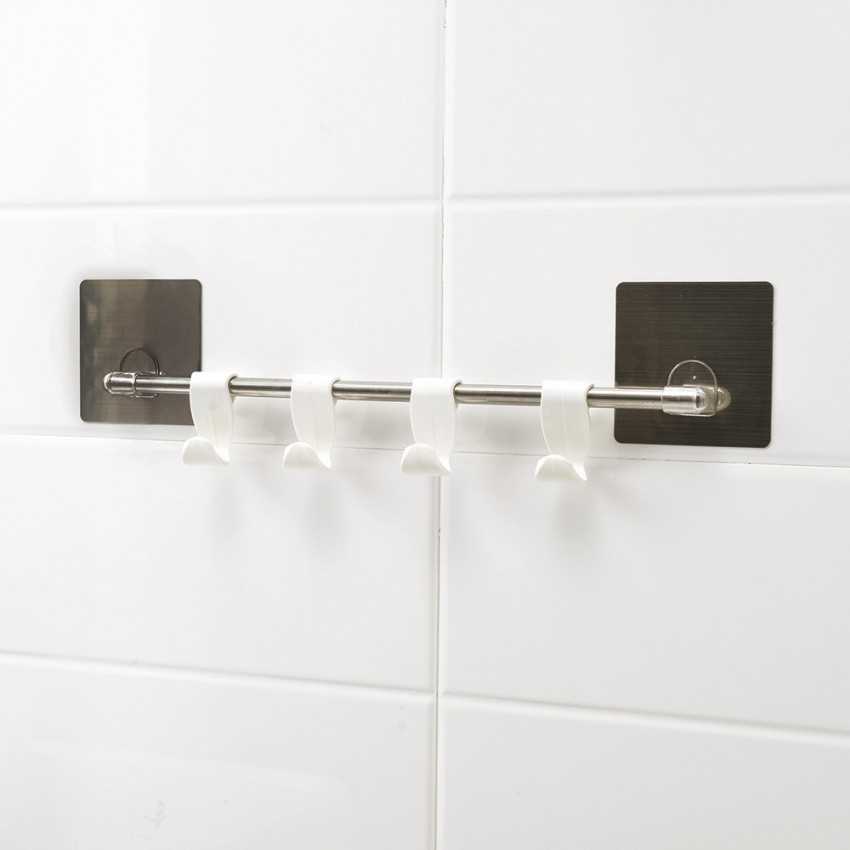 Данная модель справляется с проблемой мятого полотенца. Перекладина дает возможность повесить полотенце и дать ему высохнуть в расправленном положении. Подобного типа держатель располагают на стенной поверхности. Встречаются случаи, когда его размещают с тыльной стороны полки или шкафа. Рекомендуется фиксировать перекладину близко к поверхности. При наличии высокого потолка допустимо закрепить одновременно несколько держателей.