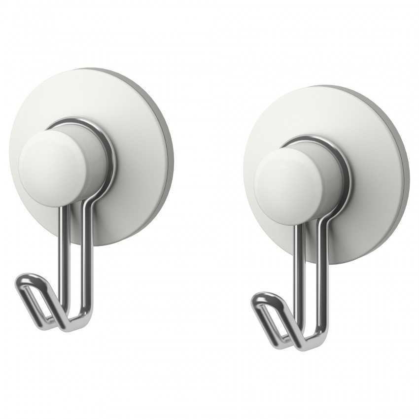 Вешалка с крючками. Простой и экономичный вариант, имеет много вариантов исполнения. Такое приспособление может быть одинарным, сдвоенным, строенным и т. д. Зачастую такие вешалки крепятся к стене за счет присосок.