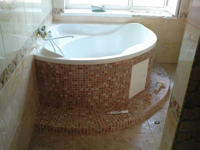 - Отделка элементов интерьера мозаикой для ванной. Такая мелкая плитка для ванной комнаты может быть из стекла, керамики или камня.