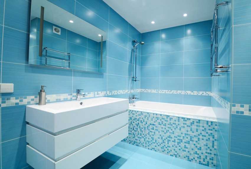Можно выбрать мозаику для отдельных участков стены, возле раковины или зеркала.