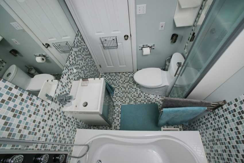 Даже на небольшой площади, при правильной ее планировке, можно вписать не только всю необходимую сантехнику, но и современные бытовые приборы, например, стиральную машинку.