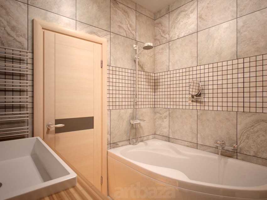 Чтобы освободить участок для ванны можно перевести проем двери. Можно установить душевую кабину, позволяющую сэкономить метры. Свободное пространство стоит заполнить шкафчиком открытого или закрытого типа. Слишком много мебели устанавливать не стоит.