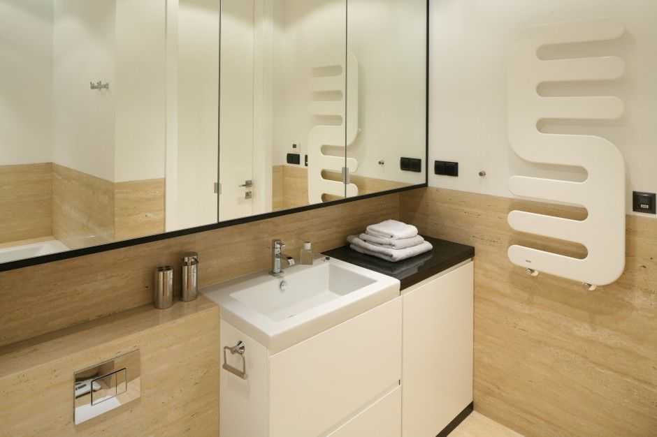 Бежевая плитка в ванной