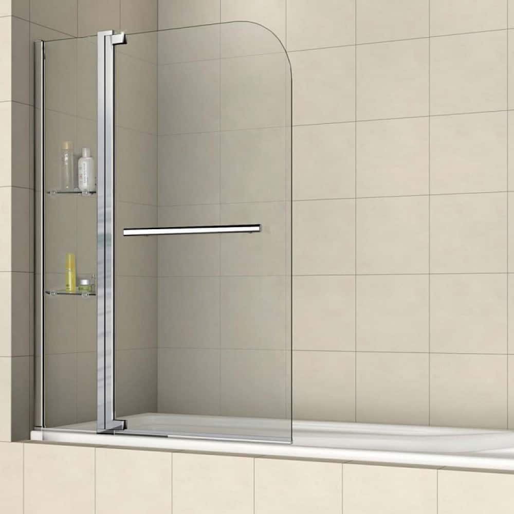Прозрачная стеклянная ширма — беспроигрышный вариант, подойдет для любого стиля оформления ванны.