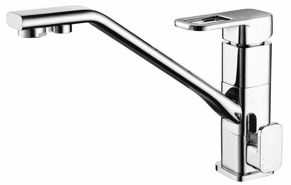 Особенность такого вида сантехники — в том, что из одного крана льется вода, использующаяся в технических нуждах, а из другого — пригодная для приготовления пищи. То есть можно мыть посуду и дополнительно задействовать кран для подачи питьевой воды — именно двойную подачу жидкости и обеспечивают смесители с двумя соплами.