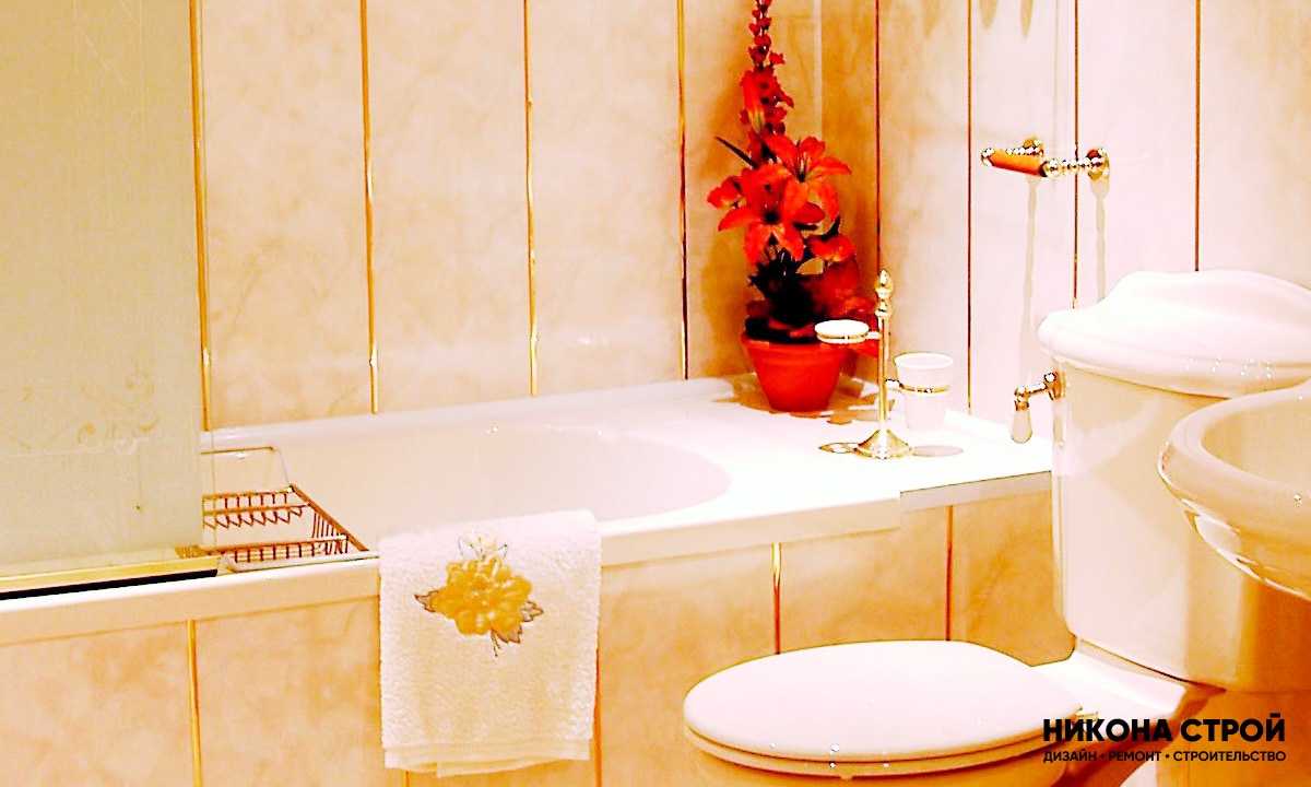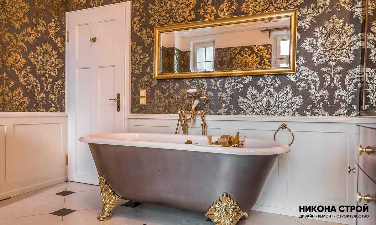 Самый бюджетный вариант облицовки. Подбирать обои необходимо тщательно, поскольку даже водостойкие модели не приспособлены для постоянного пребывания во влажной среде. Золотые панели – более приемлемый вариант, поскольку они устойчивы к воздействию жидкости.