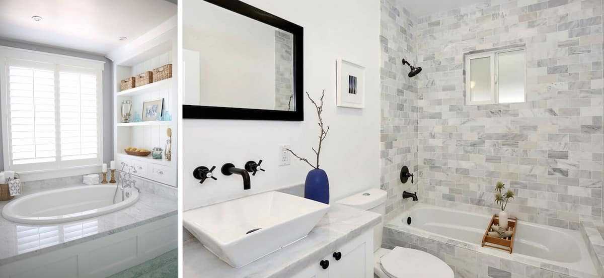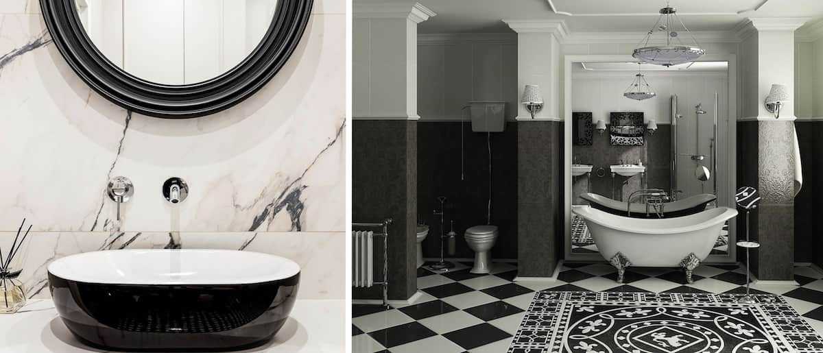 Классический дизайн ванной в черно-белых тонах