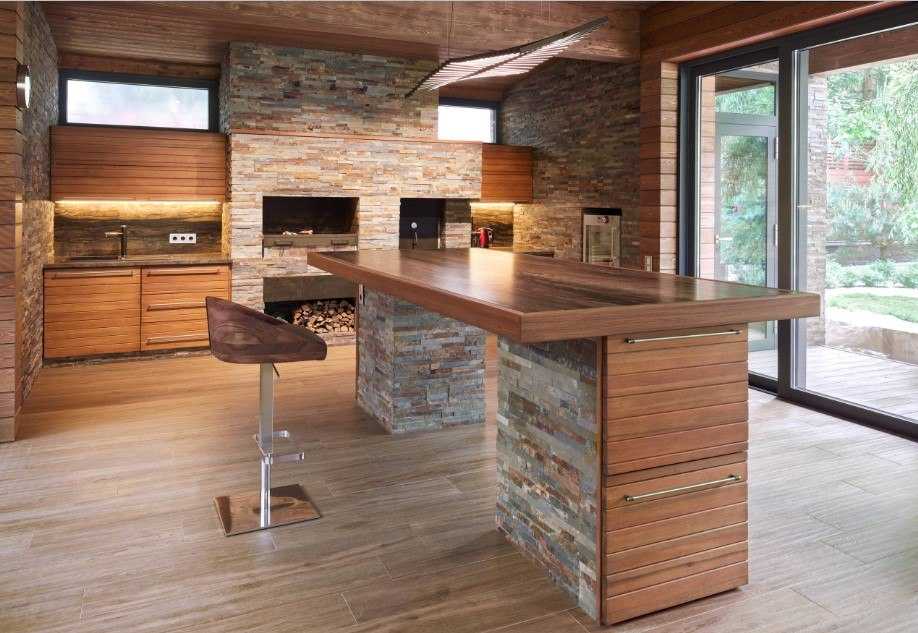 Также актуальны раковины, столешницы и пол, отделанный натуральным камнем. Это более дорогой и трудоемкий вариант, чем натуральное дерево, но более долговечный.