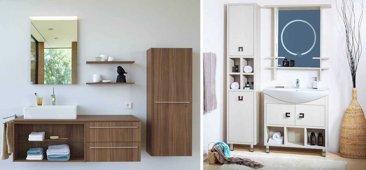 Стоит заметить, что не всякая мебель подойдет для ванной. Она должна быть устойчива к влаге, температурным изменениям и хорошо очищаться. Рассмотрим некоторые варианты.