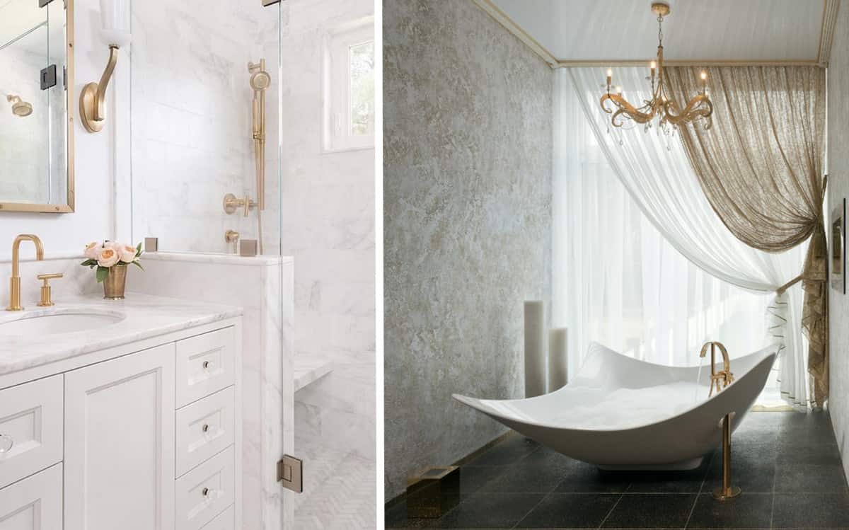 Позолоченные элементы в современном интерьере ванной добавляют ощущение роскоши и комфорта