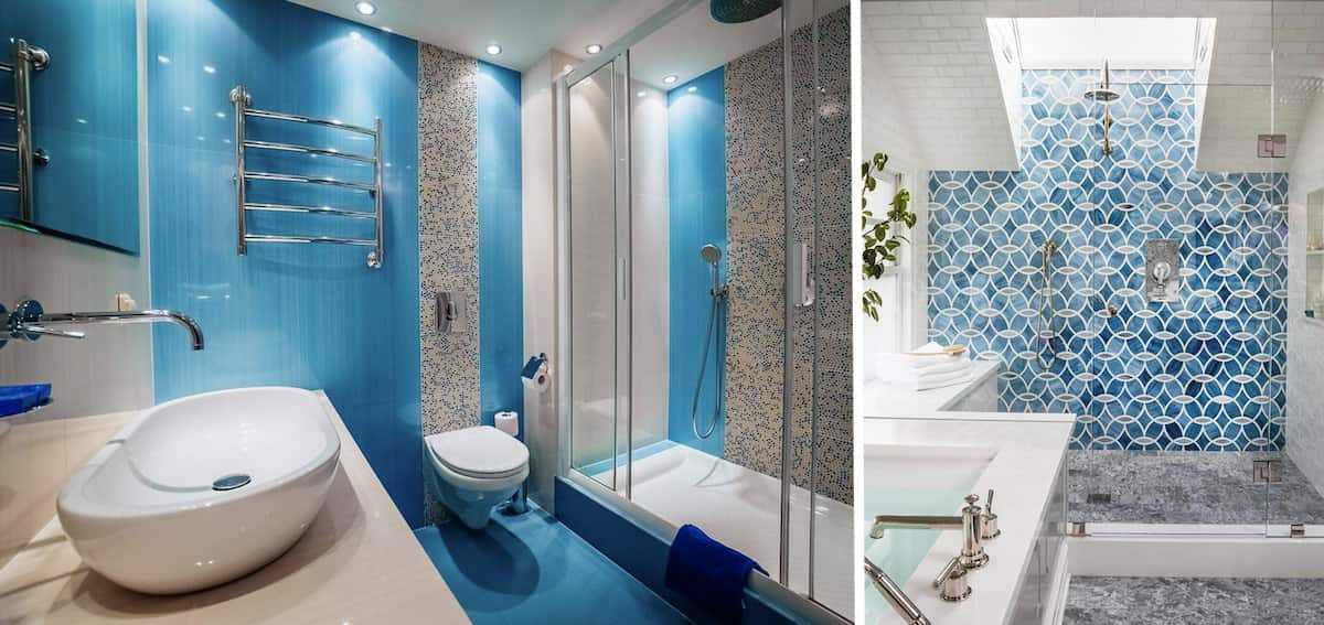Такая ванная комната всегда будет в тренде, тем более что это цвет олицетворяется с водой. В такой обстановке чувствуешь умиротворение и спокойствие, которые так нужны в современной жизни.