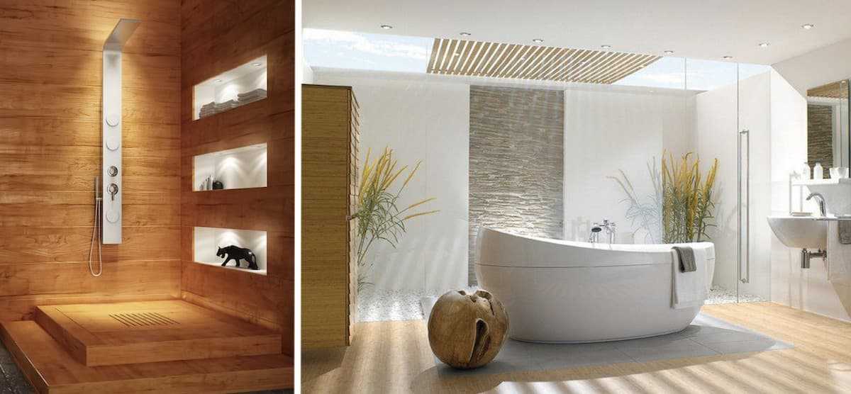 Современное обустройство дизайна в ванной комнате предполагает прежде всего использование качественных, натуральных материалов: