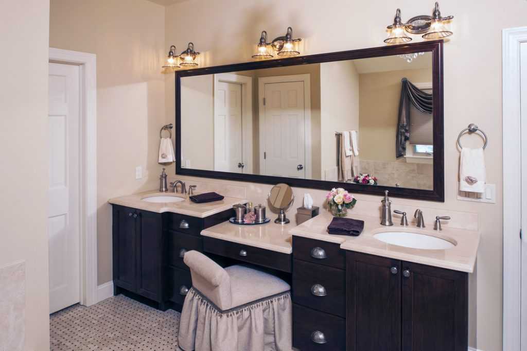 Минимальная ширина – 26 см. От этого параметра зависит, насколько удобно будет располагать на столешнице косметику.