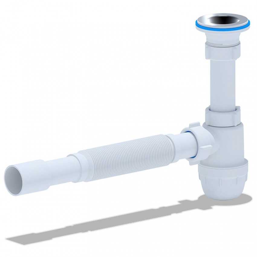 Такой вариант представляет собой трубу из складчатого материала, чаще всего они выполнены из пластика. Данный вид сифона имеет массу преимуществ, к примеру, из-за своей пластичности он компактен и достаточно прочен.