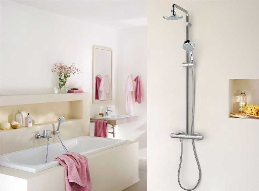 Душевая система со смесителем и верхним душем: основные комплектующие