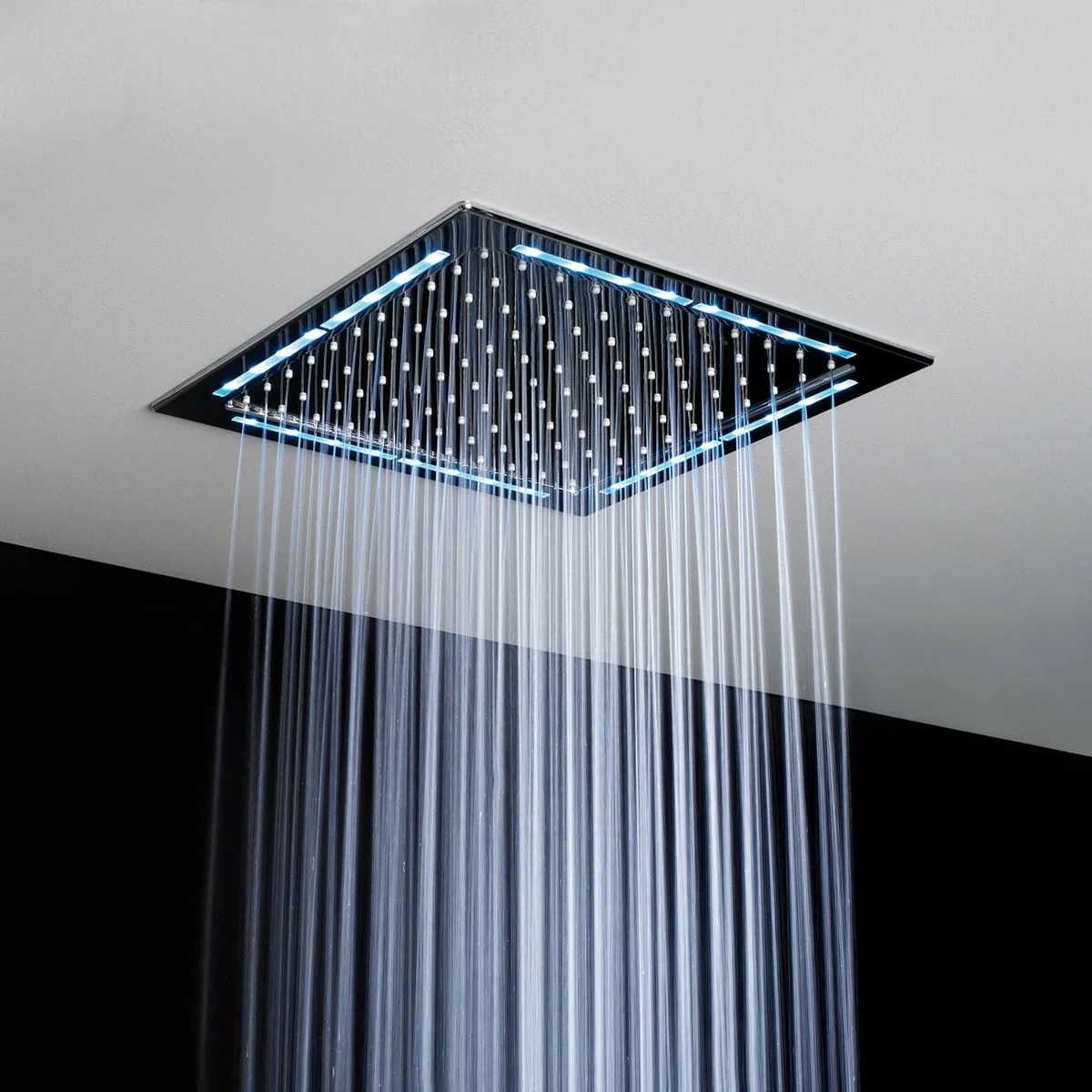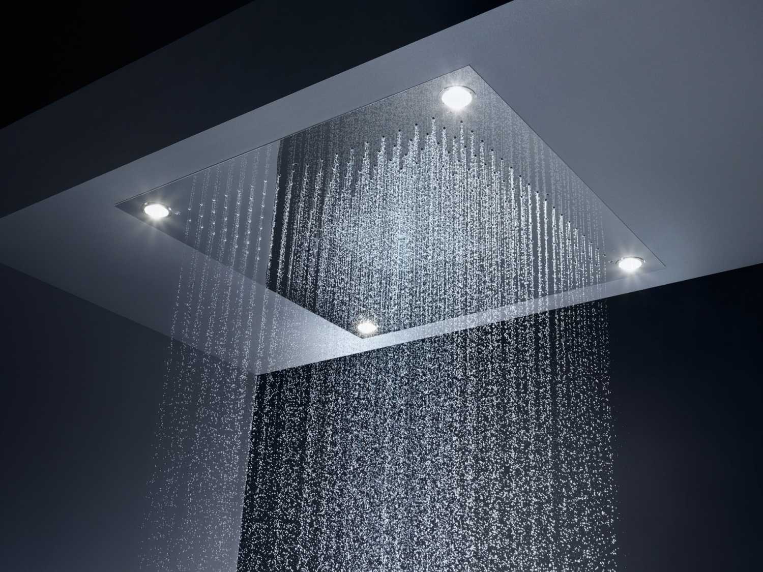 В ванных комнатах можно установить лейку для тропического дождя квадратной, прямоугольной или круглой формы. О тропическом дожде можно говорить тогда, когда размер стороны устройства составляет около 20 см, при этом у больших моделей он может достигать 60 см. Для круглой лейки мы говорим о диаметре (размеры аналогичны). Некоторые модели ливневых дождей могут иметь лейку, наклоняющуюся в необходимом направлении и освещение. Дорогие модели также могут быть оборудованы термостатом, подсветкой и другими функциями.