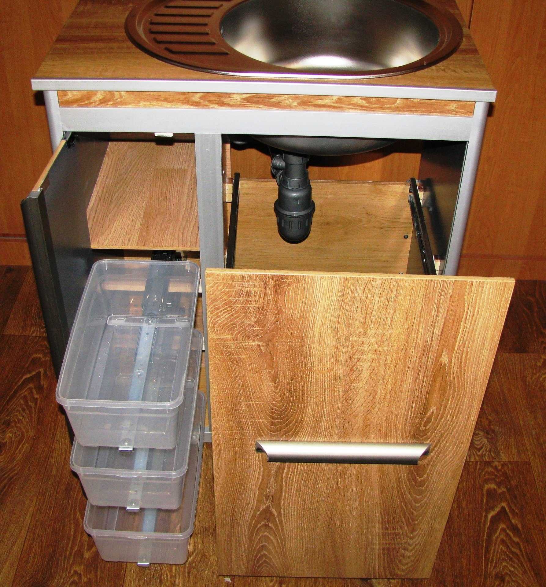 - Для этого нужно измерить габариты мойки. Затем следует определить высоту от раковины до пола. Необходимо также начертить эскиз будущего изделия и определить его размеры и составные части.