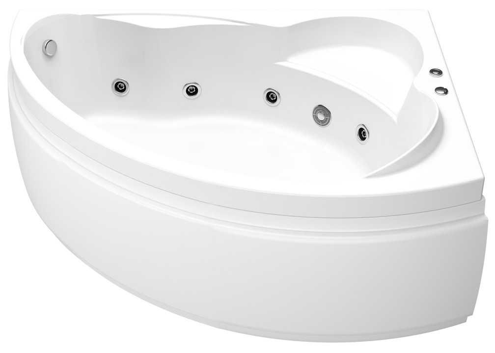 Гидромассажная асимметричная угловая ванна. Имеются удобные подлокотники. Качественному расслаблению поспособствуют эргономичные обводы, идущие под спину. С их помощью можно осуществлять массаж спины, других частей человеческого тела.