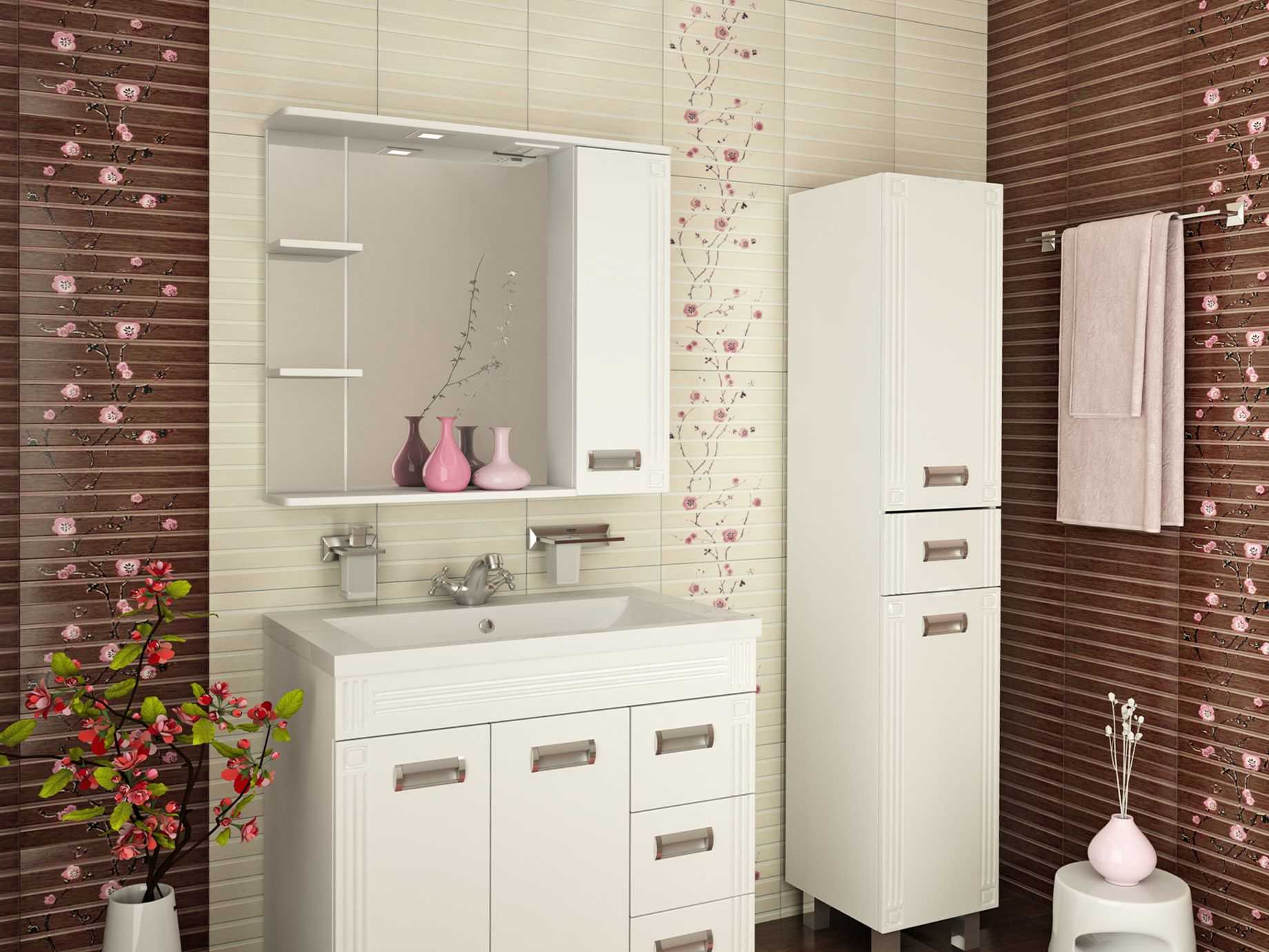 - надежность стены настолько велика, что выдержит на себе наполненный гигиеническими принадлежностями шкаф.