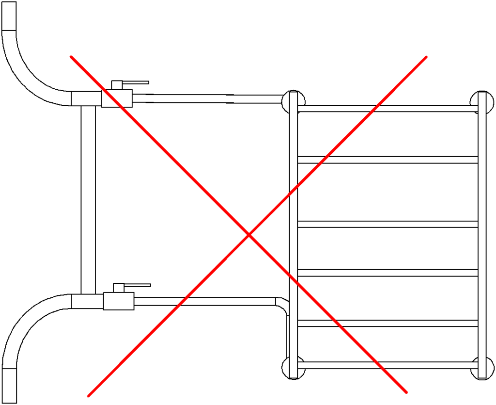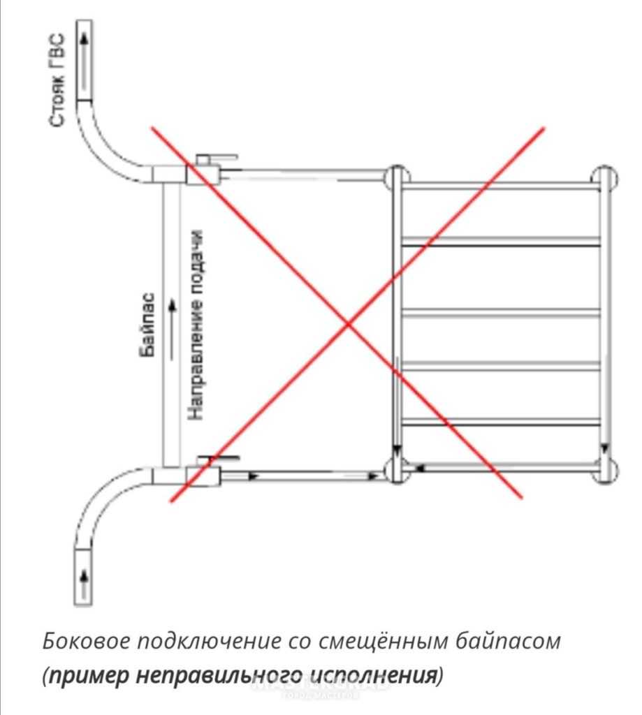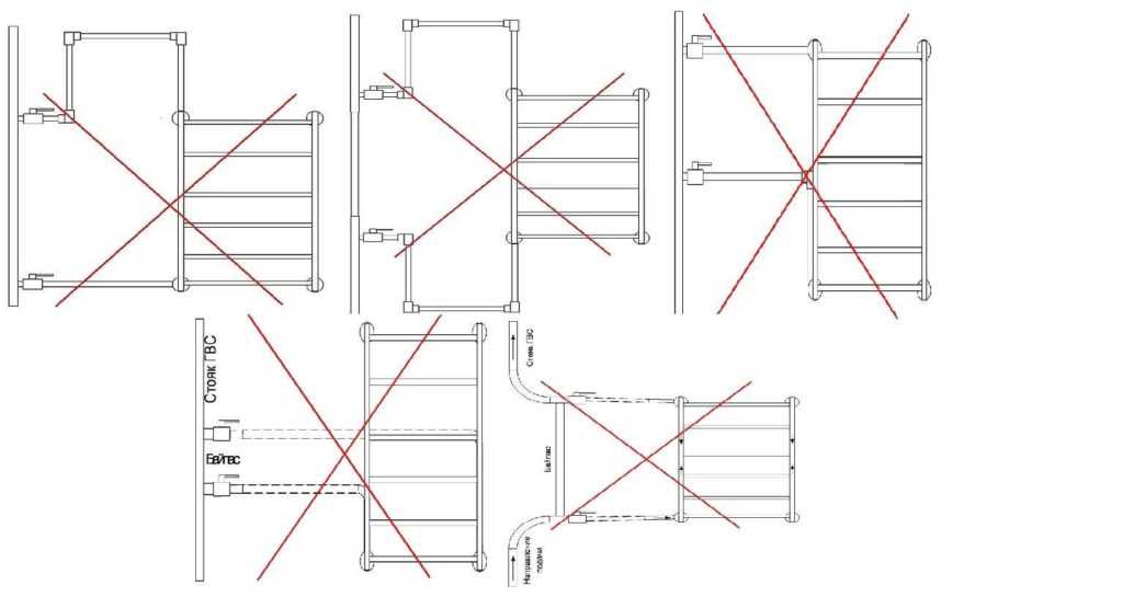 По неопытности или учитыванию не всех факторов функционирования и установки полотенцесушителя может быть реализована схема врезки, которая не будет работоспособна (включая варианты, требующие слишком частых периодических работ по обслуживанию).