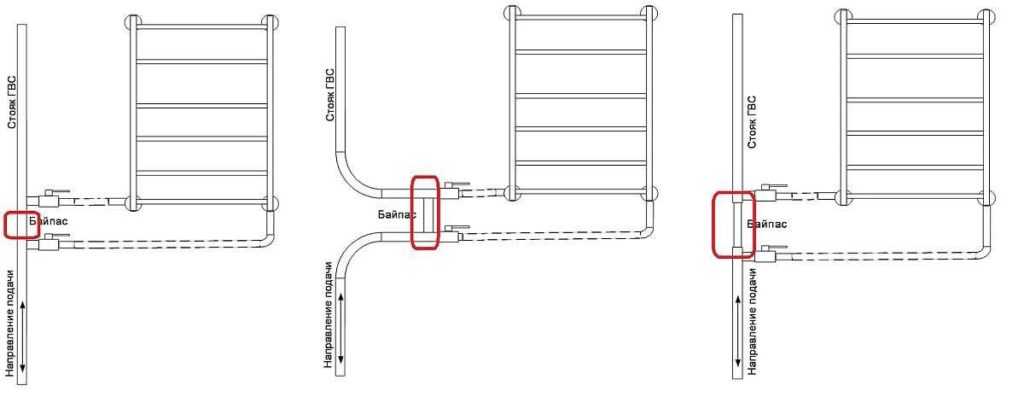Поэтому если мастер предлагает вам варианты с изгибами подвода, суженным или смещенным байпасом, будьте внимательны. Так вы избежите разочарований, когда при исправной системе горячего водоснабжения полотенцесушитель будет оставаться холодным.